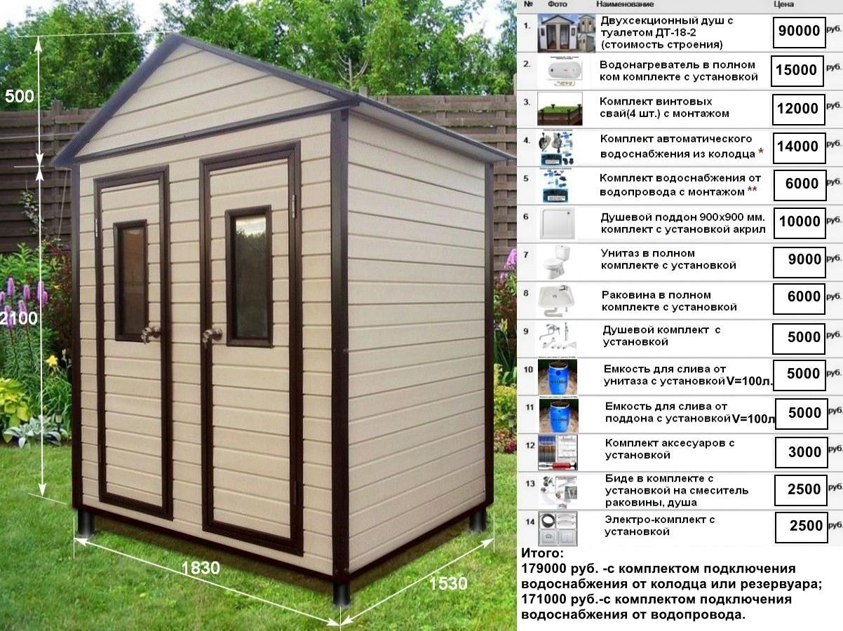 «Душ дачный с туалетом ДТ-18-2 под одной крышей и каталогом опций комплектации под ключ».