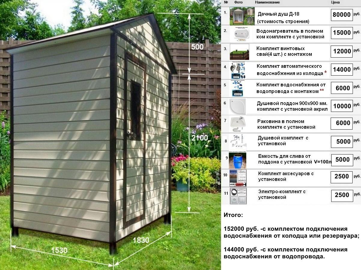 «Душ дачный Д-18 с каталогом опций комплектации под ключ».
